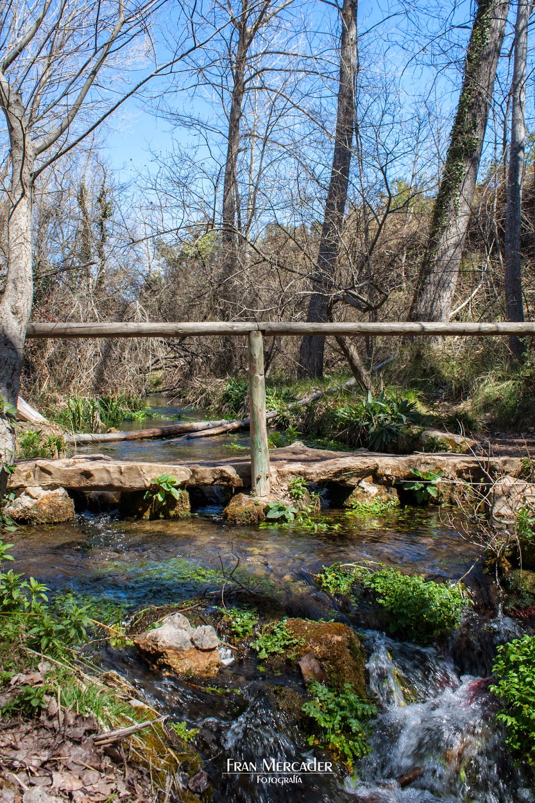 Hay que cruzar un pequeño puente que hay sobre el río (foto) y a la derecha veremos la flechita que nos indica por dónde debemos seguir para llegar a la Font de la Coveta. Si escogemos el camino de la izquierda llegaremos a
