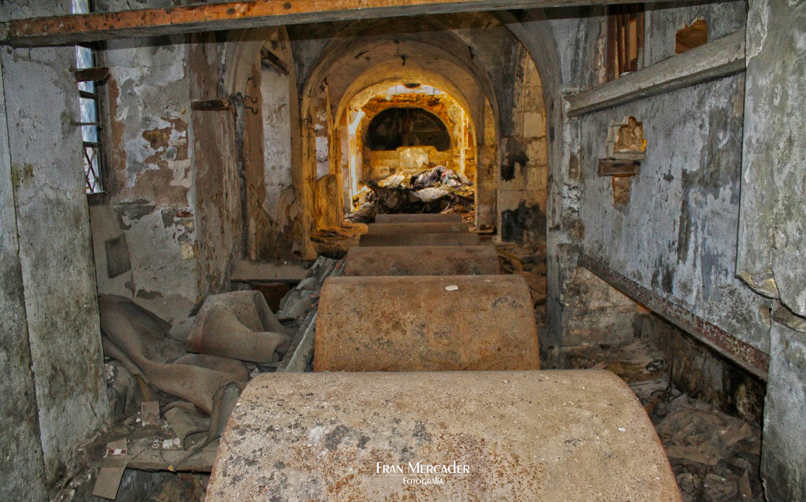 Actualmente está abandonado y en ruinas. Como se ve en la imágenes es un poco peligroso adentrarse en él, ya que se podían observar desprendimientos recientes del techo, del suelo, etc. Además, la naturaleza se lo está tragando y ha crecido vegetación a su entorno y dentro de él.