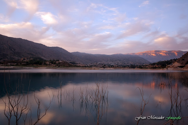 Gracias a la sequía que suele sufrir esta zona, quedan al descubierto varios árboles secos que normalmente están sumergidos y que nos permiten captar estas bellas imágenes desde el borde del pantano.