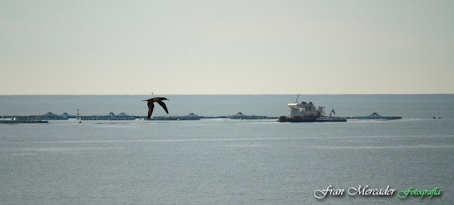 | Al fondo, la piscifactoría de la Vila |
