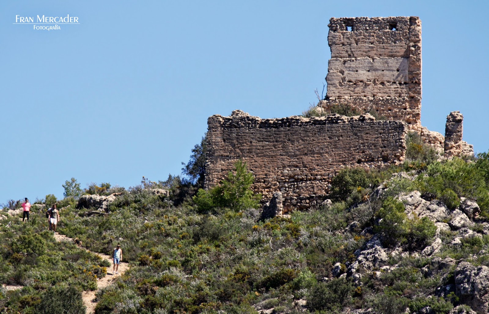 Seguimos el camino aguas arriba y se aleja un poco del cauce hasta llegar a la Masía de les Torretes. Al norte de estas casas sale un sendero que nos llevará hasta las ruinas el castillo del Vinalopó o Les Torretes, desde donde tendremos unas buenas vistas del valle (hacía demasiado calor como para subir, desistimos la idea).