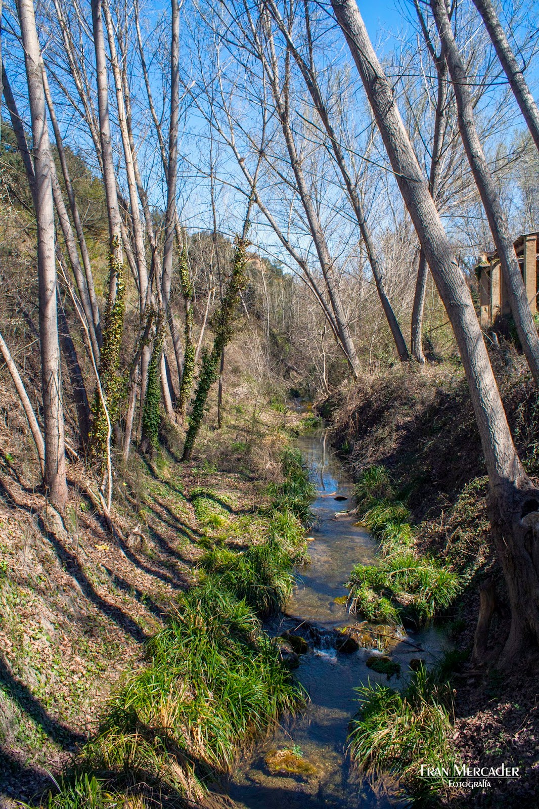 Hay que cruzar un pequeño puente que hay sobre el río (foto) y a la derecha veremos la flechita que nos indica por dónde debemos seguir para llegar a la Font de la Coveta. Si escogemos el camino de la izquierda llegaremos a