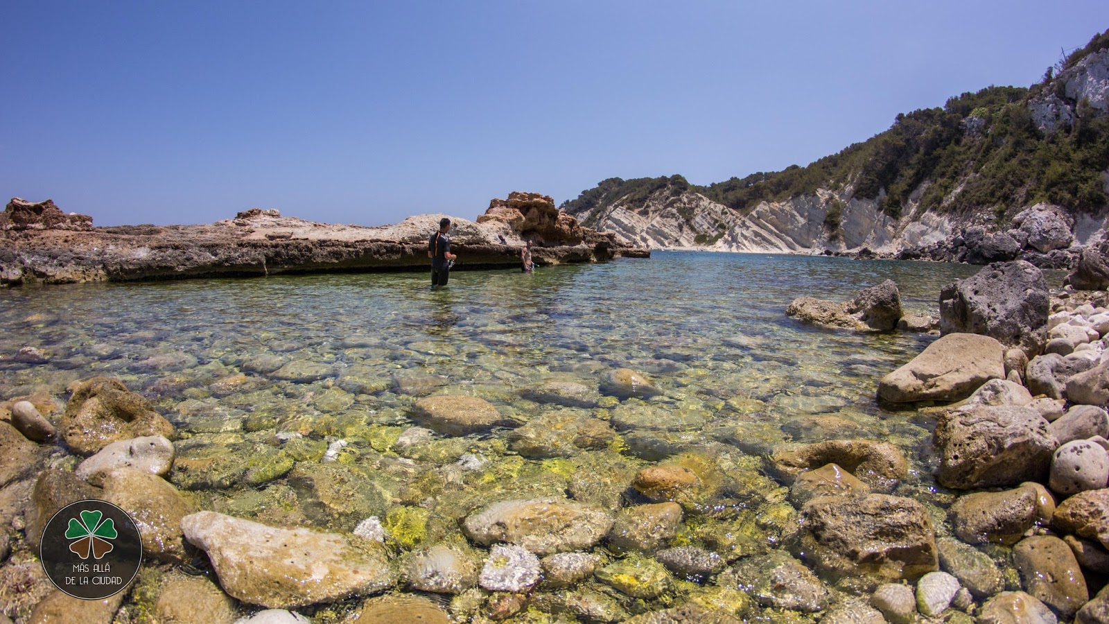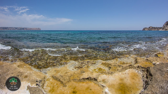 Tras este breve paseo, llegamos a la segunda cala, también de rocas y con aguas muy tranquilas gracias al brazo natural de piedra tosca que la protege del oleaje.
