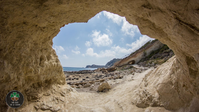 Seguimos avanzando y pasaremos por un par de túneles excavados en la roca blanca y veremos otra pequeña calita con aguas cristalinas.