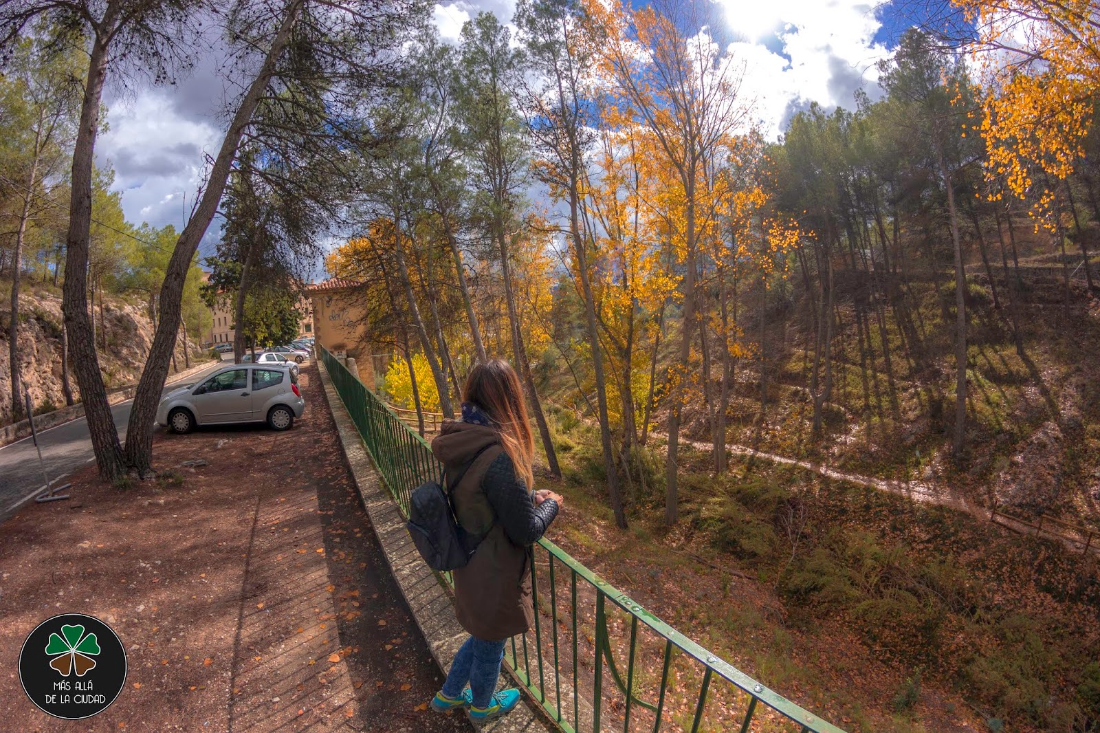 Podremos dejar el coche en las inmediaciones del edificio o un poco más adelante, entre los pinos que hay al margen de la carretera (ver imagen anterior).