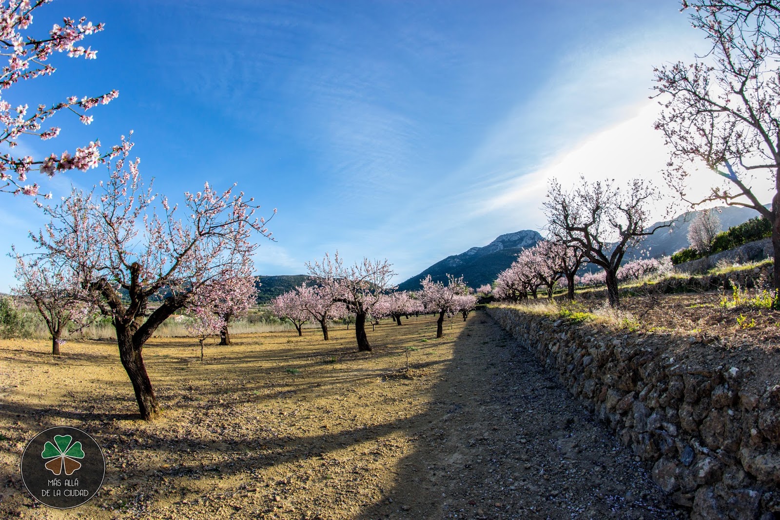 Nos dirigimos al pequeño municipio de Alcalalí, situado en la Vall de Pop, en la Marina Alta, en la mejor época del año, cuando los campos de almendros florecen, formando un espectacular manto rosa en sus montañas.