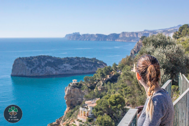 El siguiente mirador se encuentra muy cerca de este último. Volveremos a salirnos de la carretera principal, por una urbanización para llegar hasta el final de ella. Dejaremos el coche donde no moleste a ningún vecino multimillonario de la zona, para poder contemplar las vistas de los acantilados donde se sitúan el faro, así como el millar de urbanizaciones que puebla toda la costa de Xàbia.