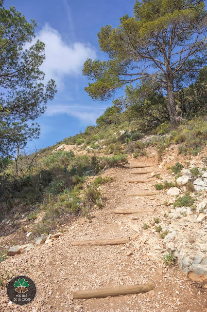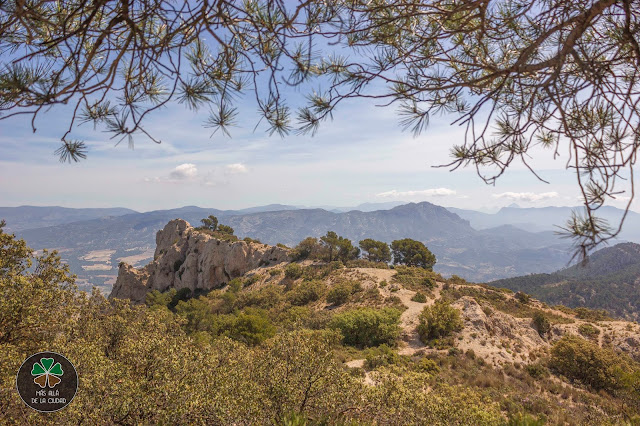 Eso sí, las vistas que vamos a ir teniendo durante todo el recorrido son increíbles. Además, recorreremos diversos biotopos, ya que caminaremos por debajo del extenso pinar que cubre toda la sierra y por secarrales en los que solo hay algunas carrascas y estrato arbustivo típico mediterráneo.