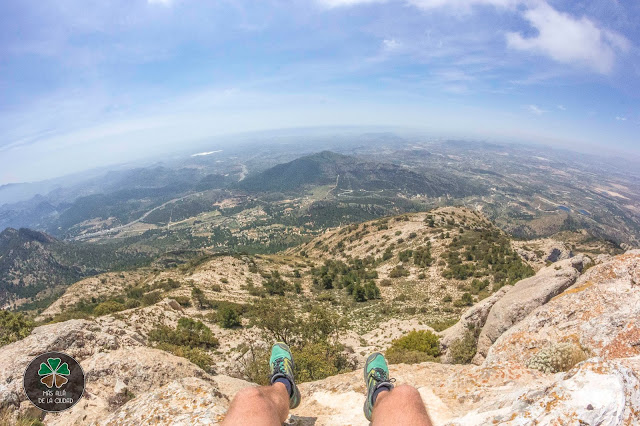 Desde aquí puedes ver prácticamente toda la provincia de Alicante, aunque a nosotros no nos salió un día con mucha visibilidad. Pero llegábamos a distinguir fácilmente la costa y la ciudad de Alicante, así como los pueblos de Castalla e Ibi. Además de algunos lugares que ya hemos visitado como la Sierra del Cabeçó d’Or, la Font Roja, el pantano de Tibi, la Penya Migjorn (Xixona), la Sierra de Aitana, el Puig Campana o el Ponoig.
